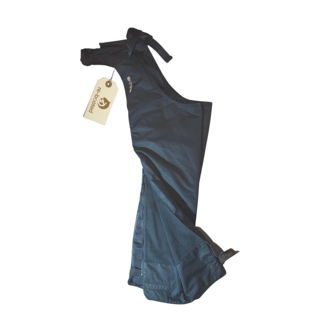 Navy waterproof chaps are also windproof and breathable. Includes fleece lining for extra warmth. Features a reflective strip and adjustable velcro strap at the ankle.